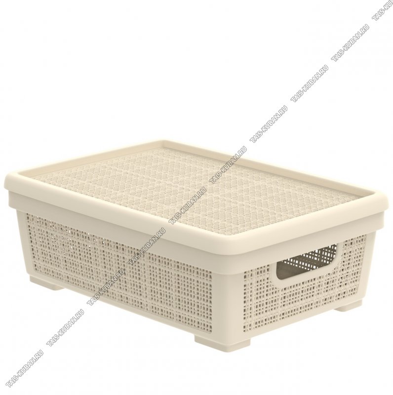 Корзина "Лен" слон.кость, с крышкой 11л (40х28,5 h13,5см) (16)