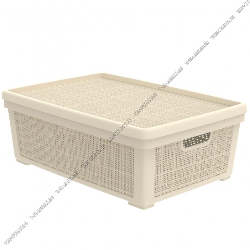 Корзина "Лен" слон.кость, с крышкой 35л (57х40 h20,5см) вырубные ручки (8)
