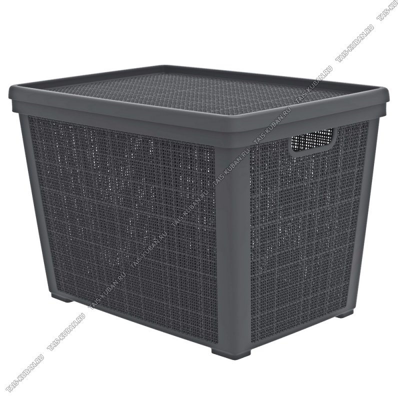 Корзина "Лен" графит, с крышкой 65л (57х40 h39см) вырубные ручки (8)