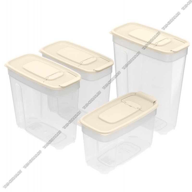 Емкость д/сыпучих Н-р 4шт бежев 1л*1шт;1,4л*2шт;1,8л*1шт (36)