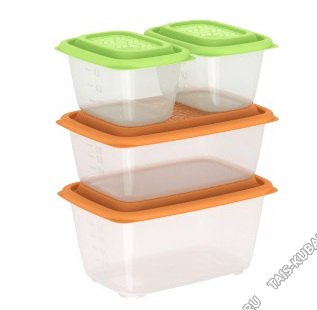 Контейнер "Гурман" Н-Р 4шт 0,45лх2шт/1,1л/1,5л д/СВЧ,заморозки, цветн.крыш (36)