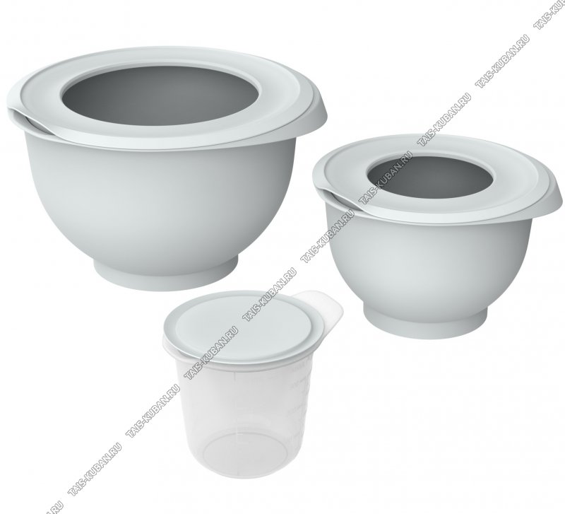 Миска д/работы с миксером н-р 3шт "Кулинар" серый 5,3л/2,1л,мерн.стакан 0,7л (12)