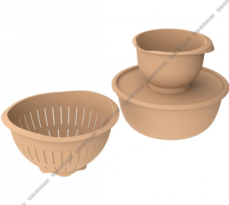 Дуршлаг 4,0л +Н-р мисок 2шт, какао (миска д/взбивания 2,1л,миска с крышк 5,6л) (9)