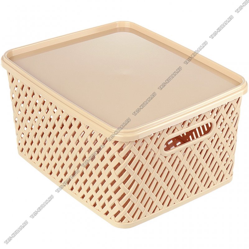 Корзина "Плетенка" 17,5л бежев, с крышк,прям (35х29 h17см) выруб.руч (8)