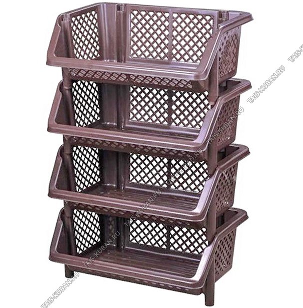 Этажерка 4-х ярусн (60х40 h100см) "Универсал", мокко, глубок.корзины (1)