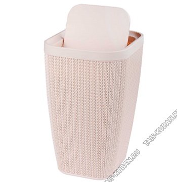 Ведро д/мусора, крышк "прямая" кач-ся 10л "Вязанное плетение" беж,квадр (20х20 h30см)фиксат.пакета (3)