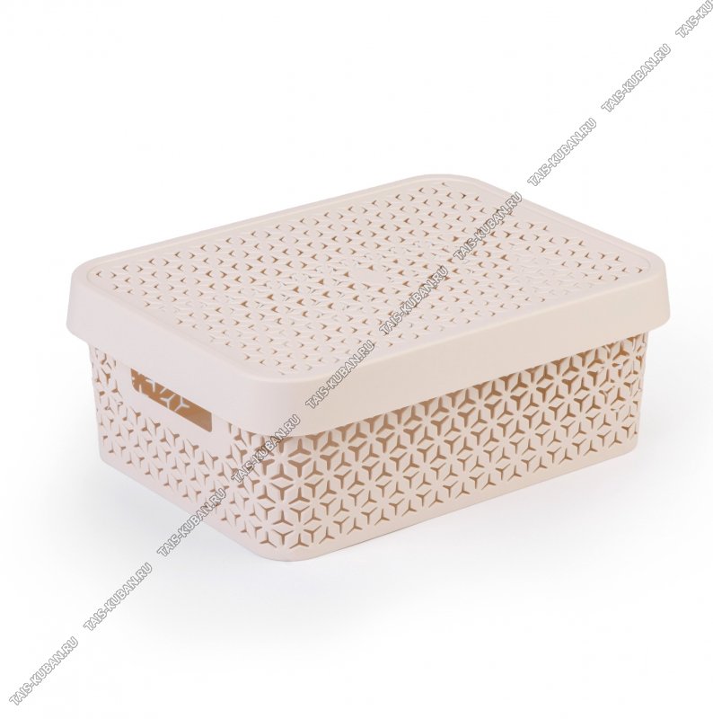 Корзина "Элемент" 11л бежев, с крышк,прям.(37х28 h14см) вырубн.ручки (7)