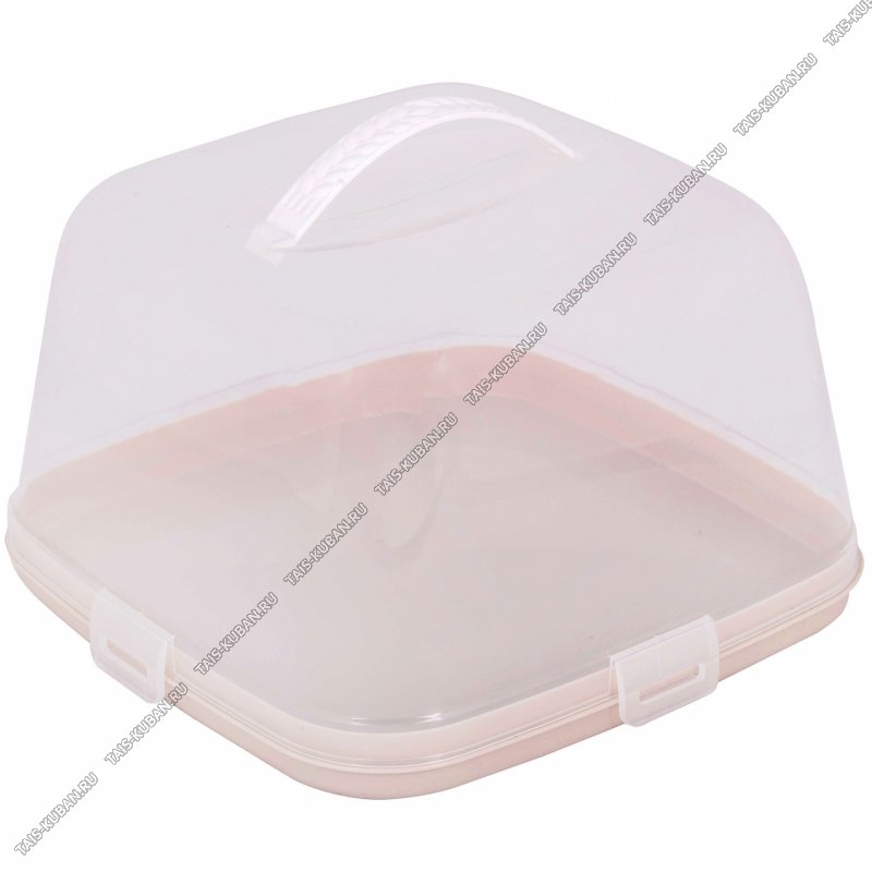 Тортовница с кр.на защ.(26х26 h17,5см) св.беж/кр.прозр (3)