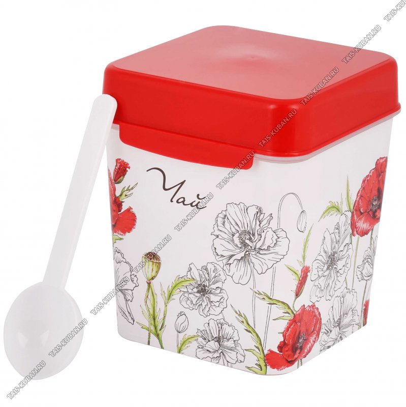 Емкость "Маки" 1,2л д/чая с ложк,квадр (13х11 h14см) (12)