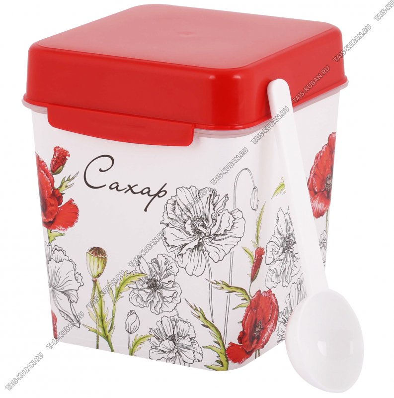 Емкость "Маки" 1,2л д/сахара с ложк,квадр (13х11 h14см) (12)