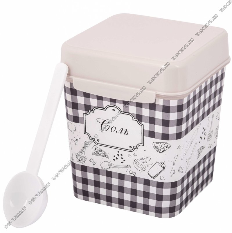 Емкость "Плетенка" 1,2л д/соли с ложк,квадр (13х11h14см) (12)
