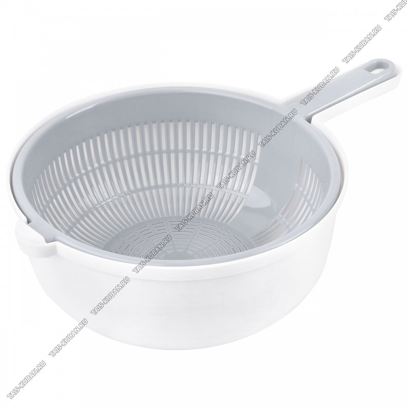 Дуршлаг с миской 3л серый,круг (d24 h10,5см) с ручк (10)