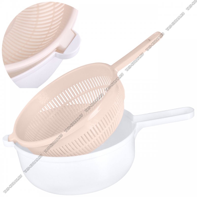 Дуршлаг с миской 3л бежевый,круг (d24 h10,5см) с ручк (10)