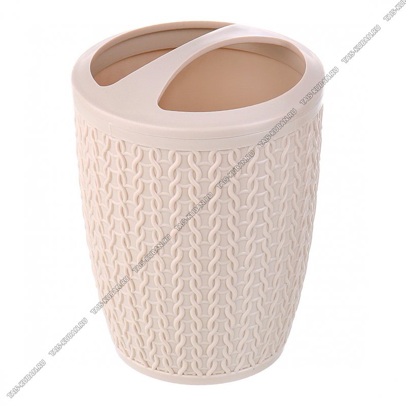 Подставка д/зубн.щеток 2-х секц."Вязание" бежев,круг (d9 h12,5см) (18)