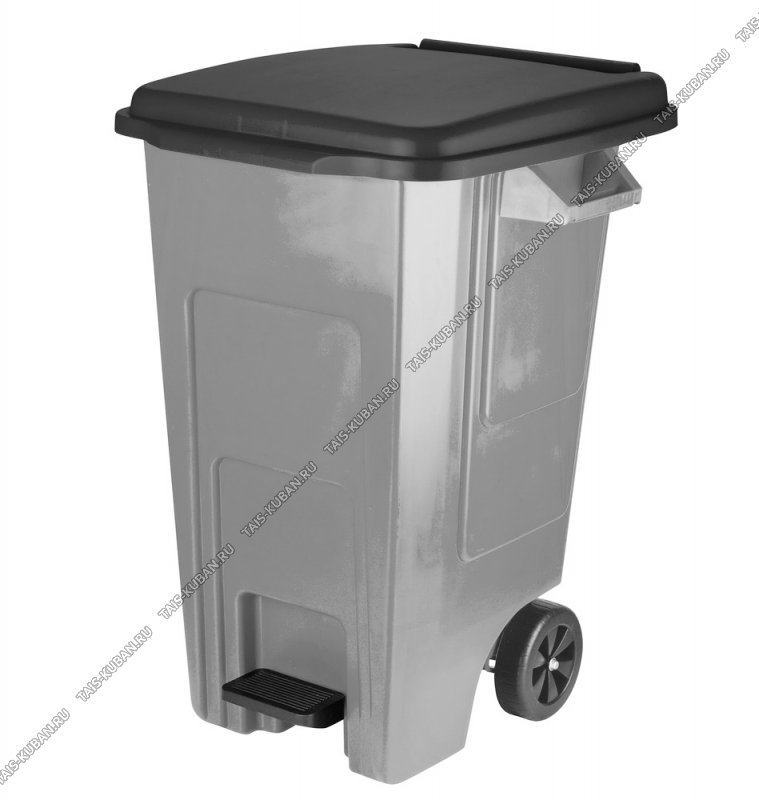 Бак д/мусора на колес. педаль 100л (58х53,5 h82см) с кр,черн/тем.серый (1)