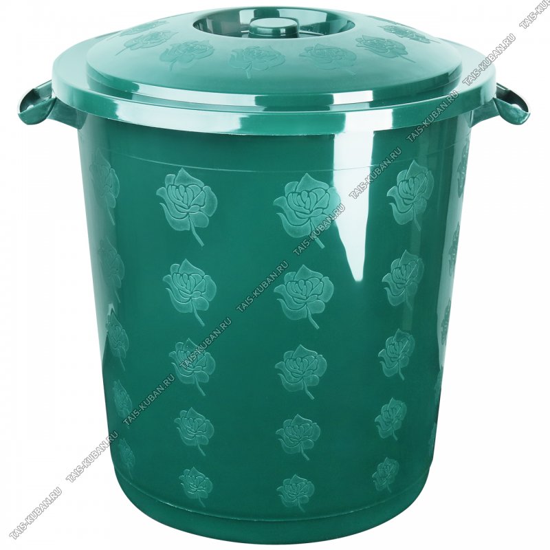 Бак д/мусора 25л "рельеф.цветы" темн.зелен (d35 h39см) с крыш, Эльф (15)