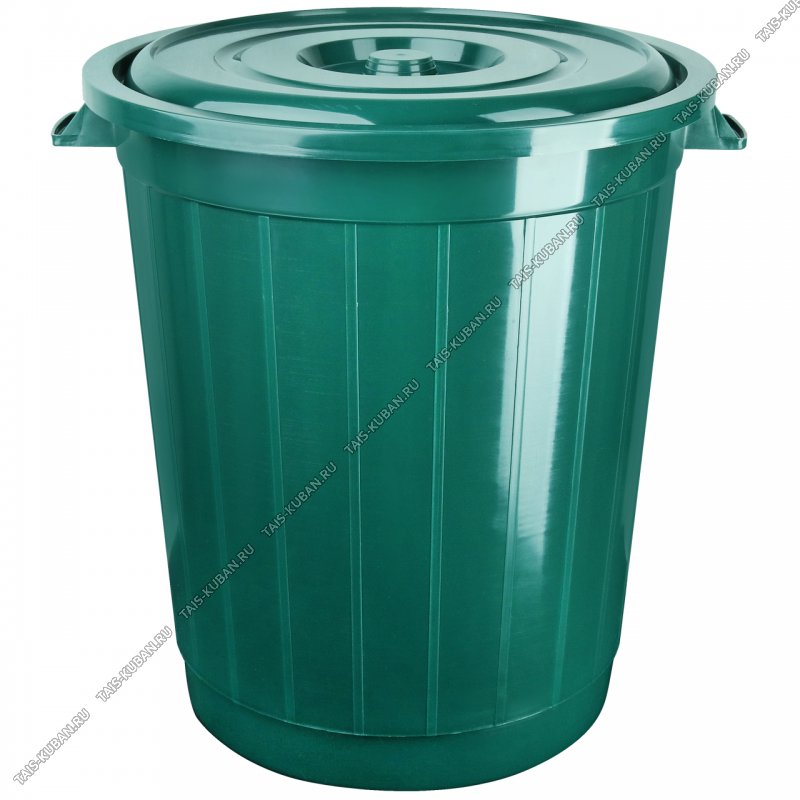 Бак д/мусора 80л темн.зелен (d49 h56см) с крыш, Эльф (10)