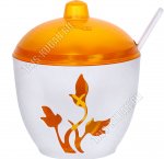 "Viola" бел/оранж Сахарница с крышк 0,3л +ложка (d10 h8см) (24)