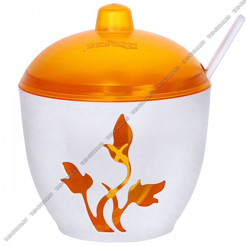 Сахарница с крышк 0,3л +ложка, бел/оранж (d10 h8см) Viola (24)