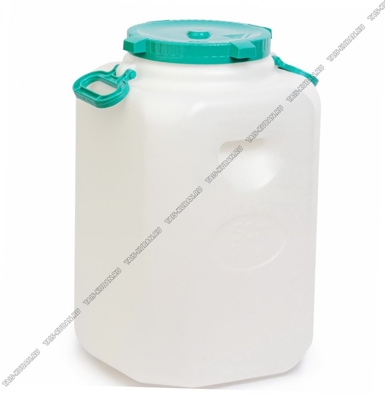 Фляга квадрат 50л, d горла 21см (32х32 h55см) винтовая крышка,вдавленные в корпус ручки+2навесные ручки,белый (4)