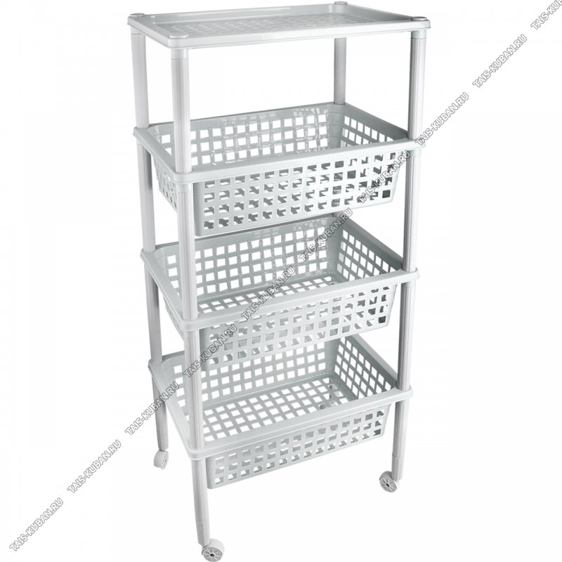 Этажерка 4-х яр (42х29 h88см) "Элиза", серый, на колес,сетчат.корзины (3)