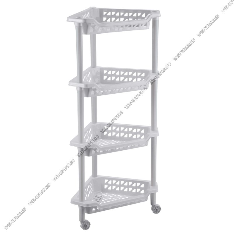 Этажерка "Тереза" 4-х ярусн, угловая,серый (40х27 h84см) на колесиках (6)