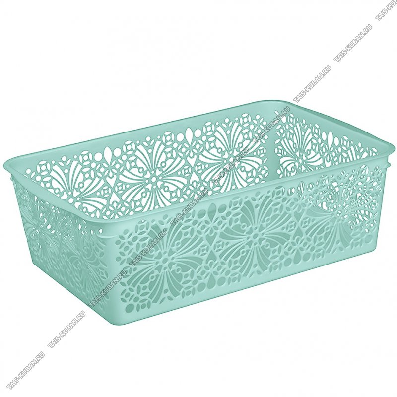 Корзинка Корзинка "Ажурные цветы" 4,3л неж.зел,прям.(30х19,5 h9,5см) (18)