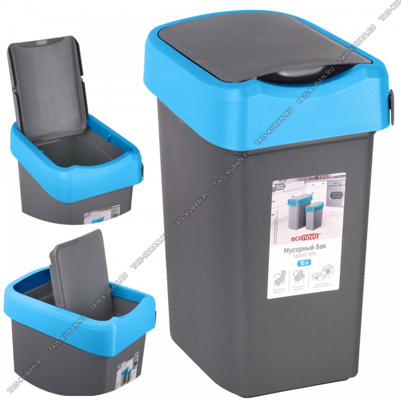 Ведро д/мусора, крышк "прямая" кач-ся 10л, 2 положен.крыш-вверх и кач-ся,д/крупн.и мелк.мусора, сер/синий,прям (24х19 h34см) фиксат.пакета (4)