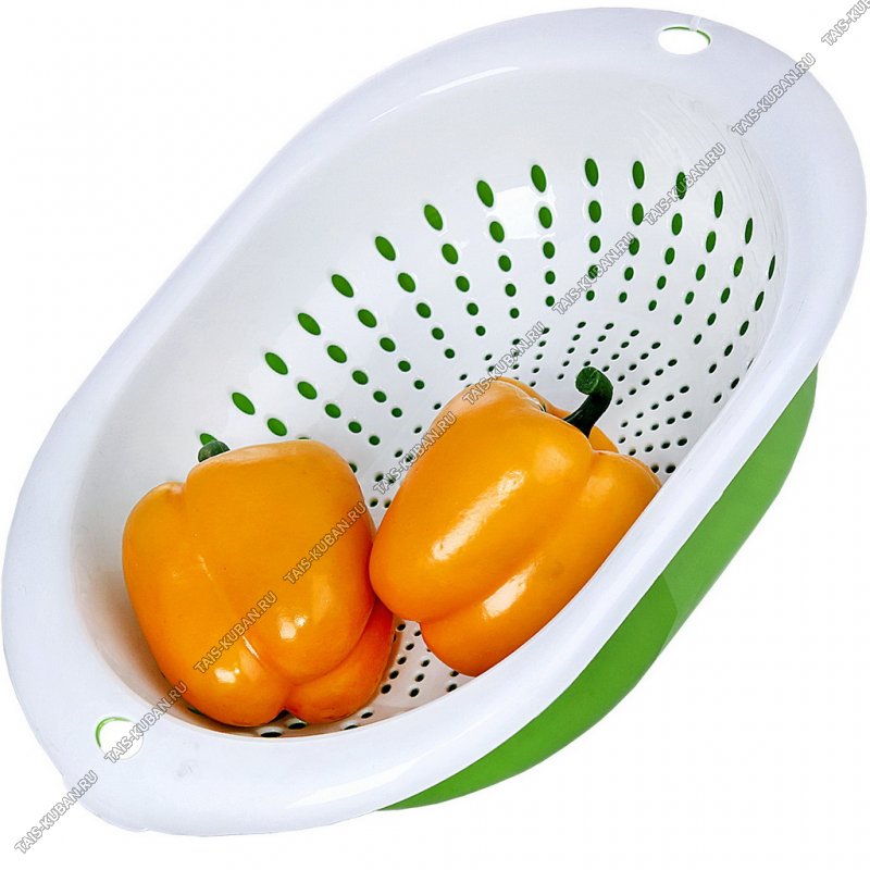 Дуршлаг с миской д/слива 3л овал,зелен/бел (32х23,2 h8,5см) (20)
