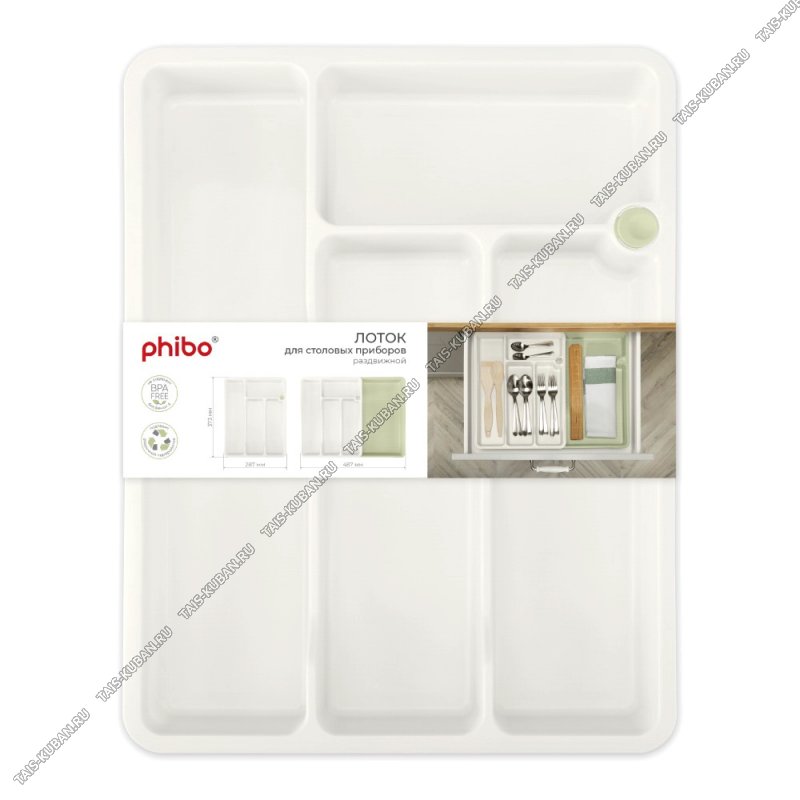 Лоток-вкладыш для столовых приборов 4 секции, раздвижной, светло серый (51/37,3х28,5 h5см) (8)