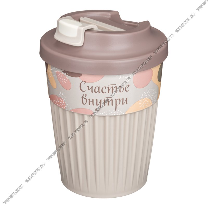 Стакан с клапаном 0,35л "Счастье внутри" для горячих напитков,светло-беж, Бытпласт (11)