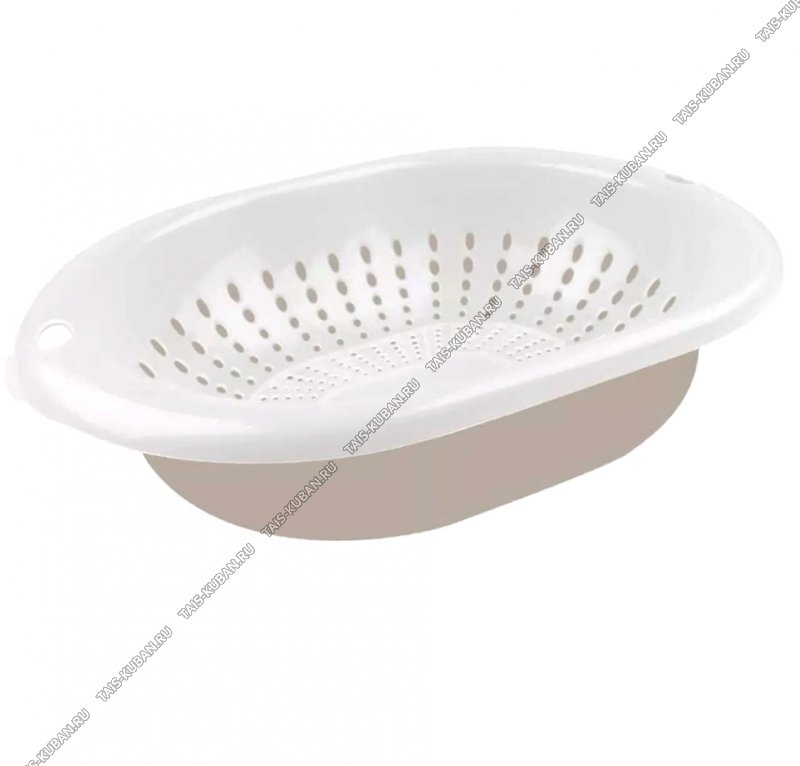 Дуршлаг с миской д/слива 3л овал,св.беж/бел (32х23,2 h8,5см) (20)