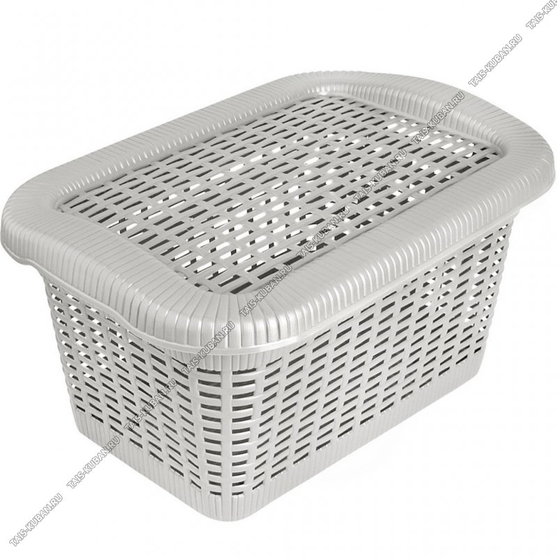 Корзина д/белья 20л "Ротанг" сер. с крыш,прям.(45х30 h25см) (12)