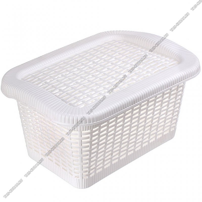 Корзина д/белья 20л "Ротанг" бел. с крыш,прям.(45х30 h25см) (12)