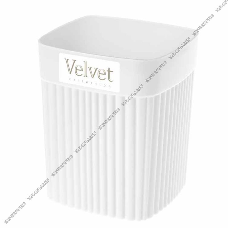 "Velvet" белый Подставка для зубных принадлеж 3-х секц. 0,65л (9х9 h12см) (9)