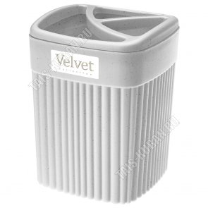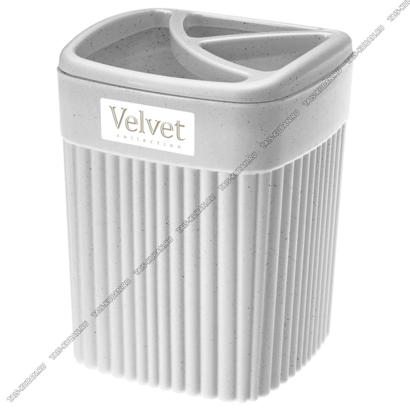 "Velvet" серый, для зубных принадлежностей 3-х секционный 0,65л (9х9 h12см) (18)