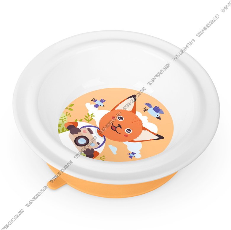 Тарелка глубок,детск 0,4л "Лисёнок" дно-присоска силикон,бел/оранж (d18 h3см) Бытпласт (12)