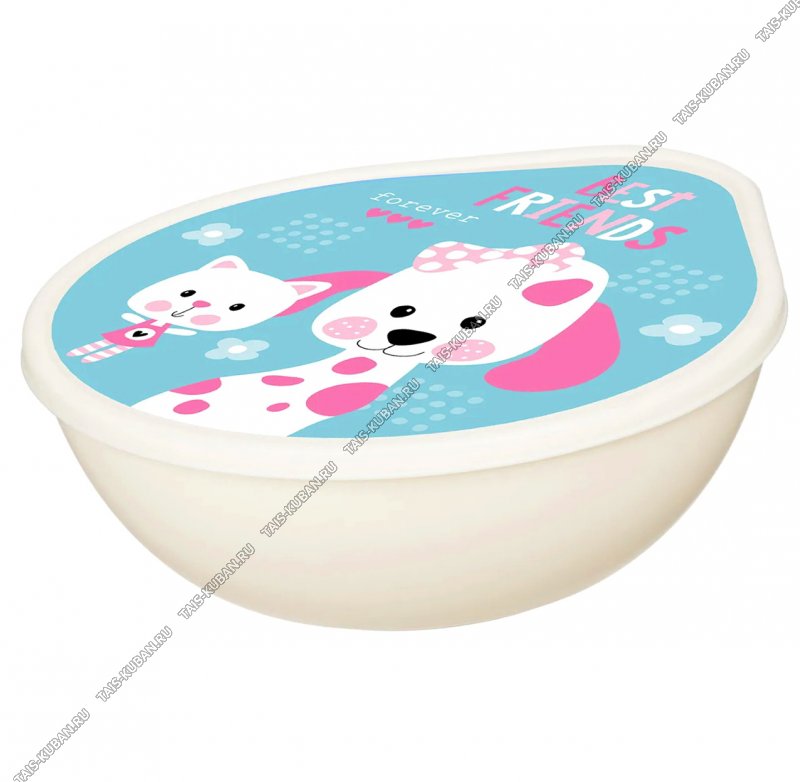 Миска с крышкой, детская d13,5см "Лучшие друзья" св.бежевый,форма капля Homver (18)