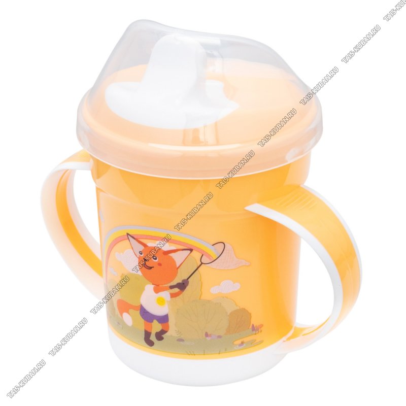 Поильник-непроливайка 0,32л "Лисёнок" оранжевый,мягкий носик,с 2-мя ручк,защитн.крыш (d12 h8см) Бытпласт (12)