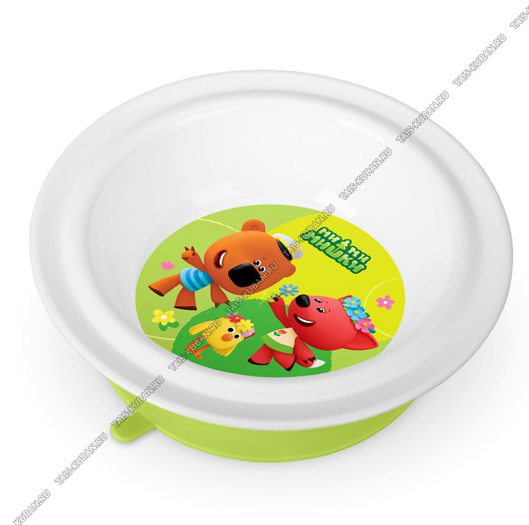 Тарелка глубок,детск 0,4л "Ми-Ми-Мишки" дно-присоска,зеленый (d18 h3см) Бытпласт (12)