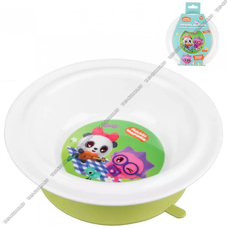 Тарелка глубокая,детская 0,4л "Малышарики" дно-присоска,зеленый (d18 h3см) Бытпласт (12)