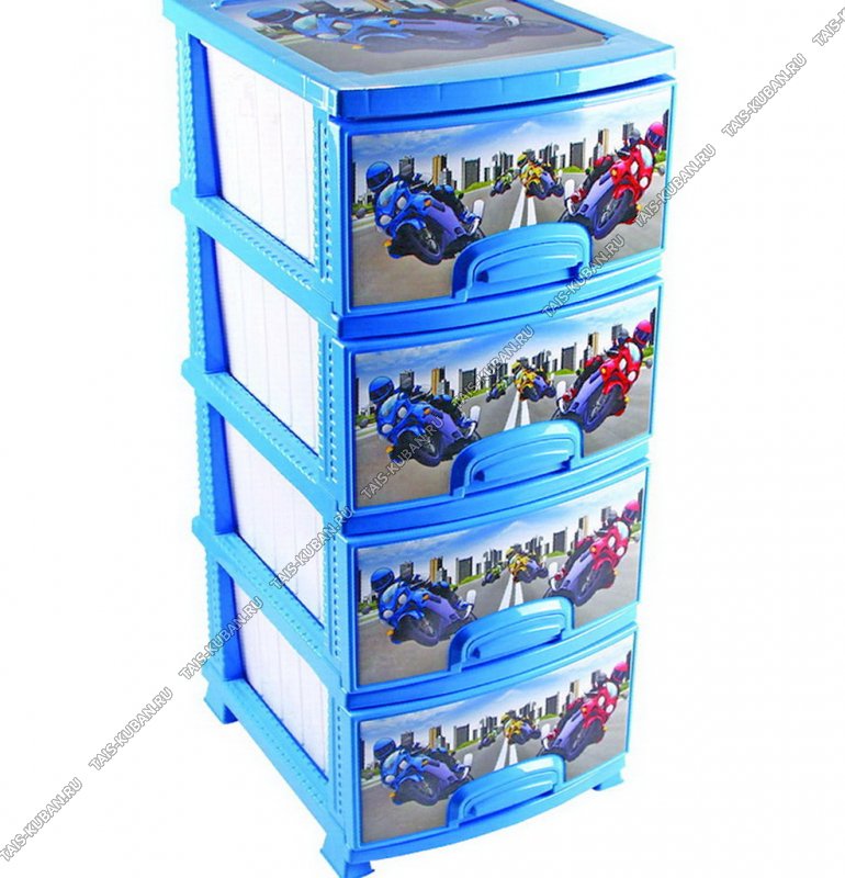 Комод 4-х секц."Мотокросс" голубой (40х48 h98см) Русспласт (1)