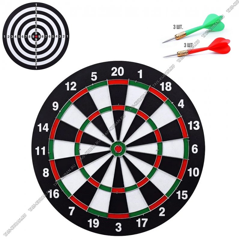 Дартс "Точно в цель" d38см двусторонний, 6пластиковых дротика с металлическим наконечником, пакет (36)