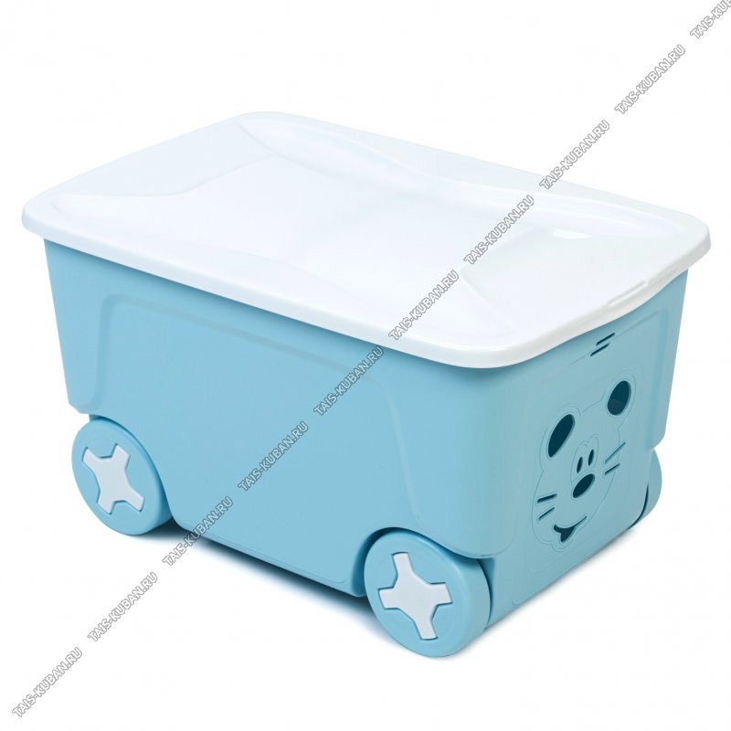 Ящик д/игрушек 50л "Котик" с крышкой,серо-голубой/белый (60х38 h33см) на колесиках (4) Plast Team