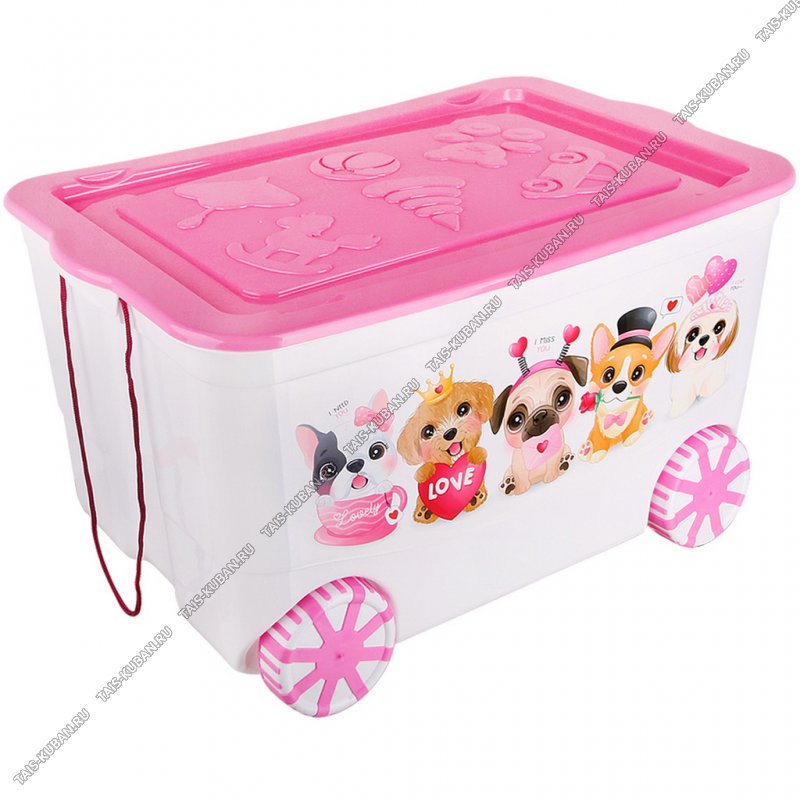 Ящик д/игрушек 55л "KidsBox" с крышкой,белый/розовый (61х33 h40см) на колесах (6) Эльф