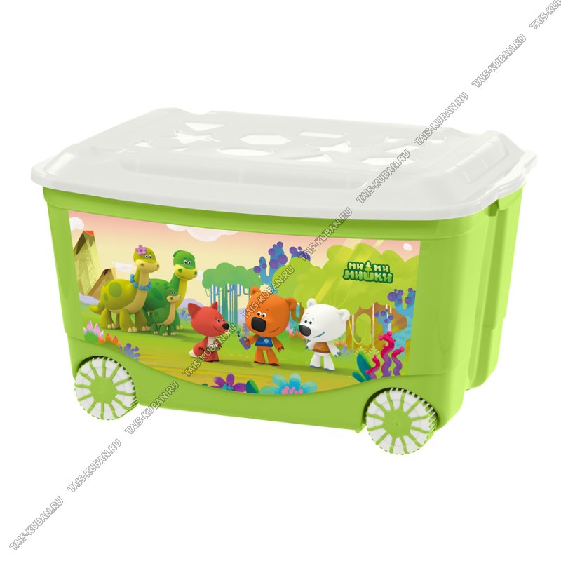 Ящик д/игрушек 45л "Ми-Ми-Мишки" зелен/крыш.бел (58х39 h33см) прорезин.колес, Бытпласт (6)