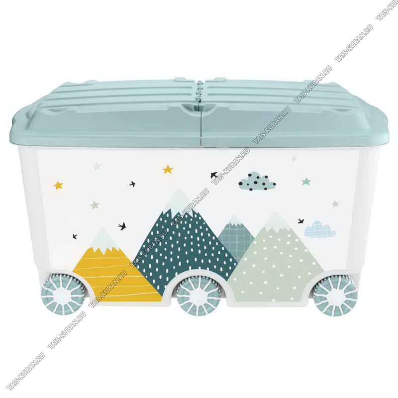 Ящик д/игрушек 66,5л "Горы" св.голуб.крышка с 2-х стороннее открытие (68х39 h38см) 6 прорезиненных колес (3) Бытпласт
