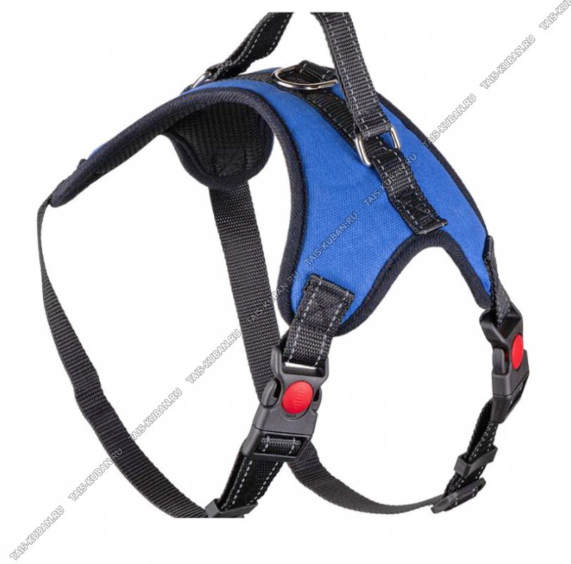 Шлейка для крупных пород, размер L (окружность груди 64-86см) с застежками-фастекс, стопперы, нейлон, полиэстер, цинковый сплав, синий/черный