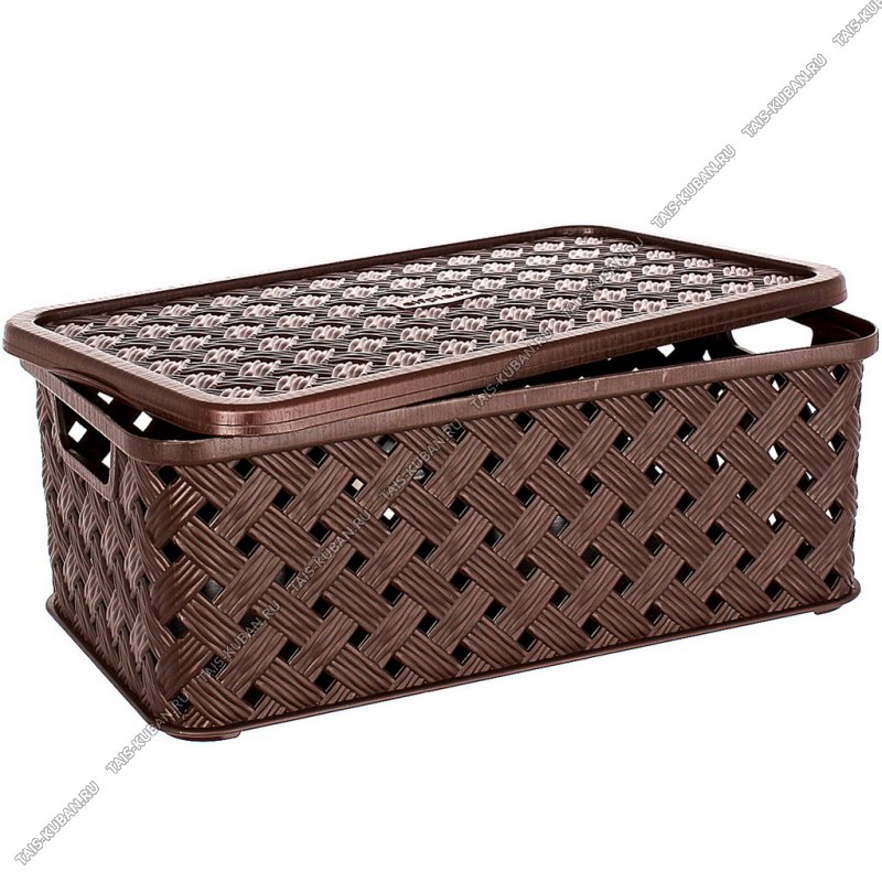 Корзинка для хранения,с крышкой "Плетенка" 6л шоколад (15)