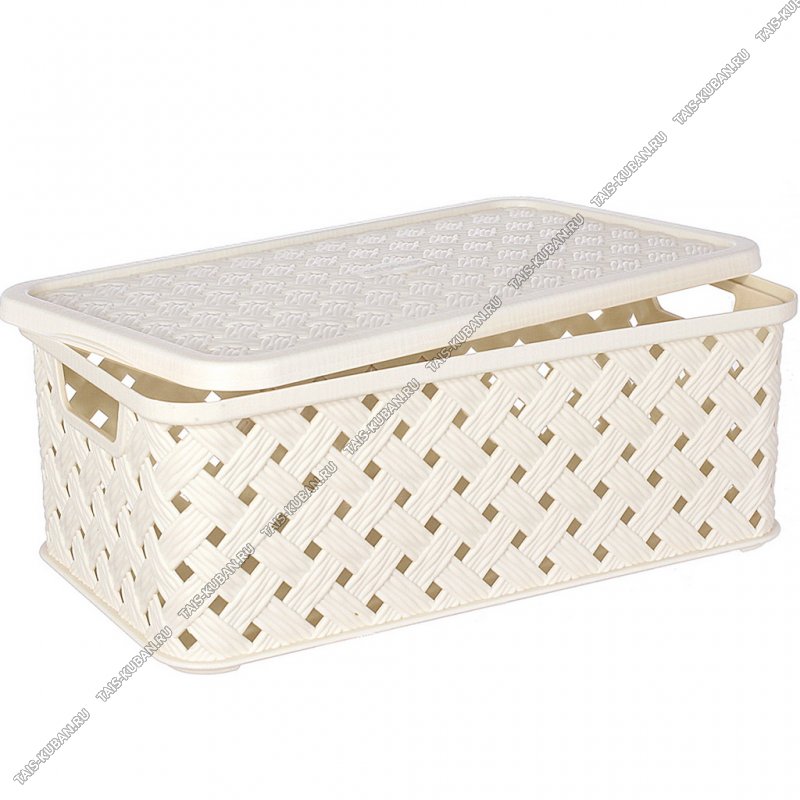 Корзинка "Плетенка" прям,с крышк, молочн 3,0л (27х15 h10см) выруб.руч.(30)